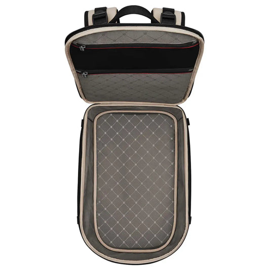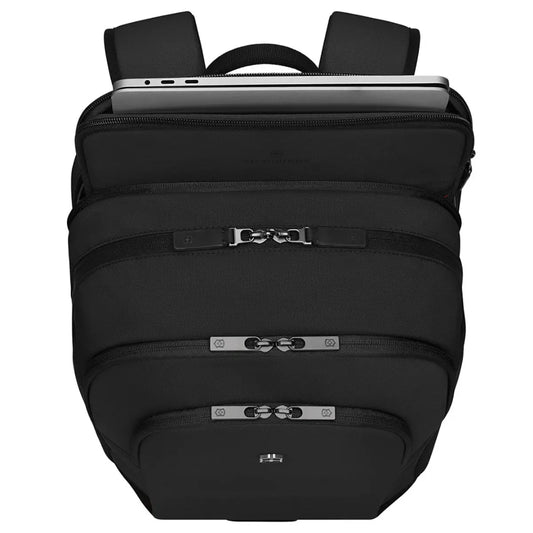 Perfect backpack size for city commute with a 16β laptop or smaller. I can also fit in a lunch box & gym gear, extra notebook, paperback book, sunnies etc. Could probably squeeze in a light pair of flat shoes but I donβt think trainers. Stable and comfortable to wear and I really like the small slip pocket on the right strap for quick access to a travel pass.