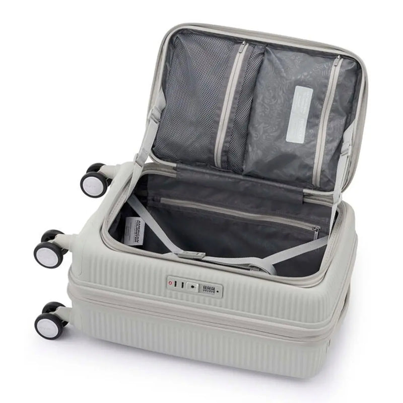 Packing can’t be any better with the new Curio. Creative front top access opening ensures full access in any location and situation be it in a small hotel room or last-minute access before boarding a plane. The front opening design solves the problem when you have bulky items which is difficult to fit in traditional luggage with two separated compartments. The Duosaf ™ security zipper delivers top security, and the Optimov™ shock-absorbing wheels allow smooth rolling on bumpy surfaces. The recycled interior lining is treated with Microban® technology to reduce the growth of bacteria.