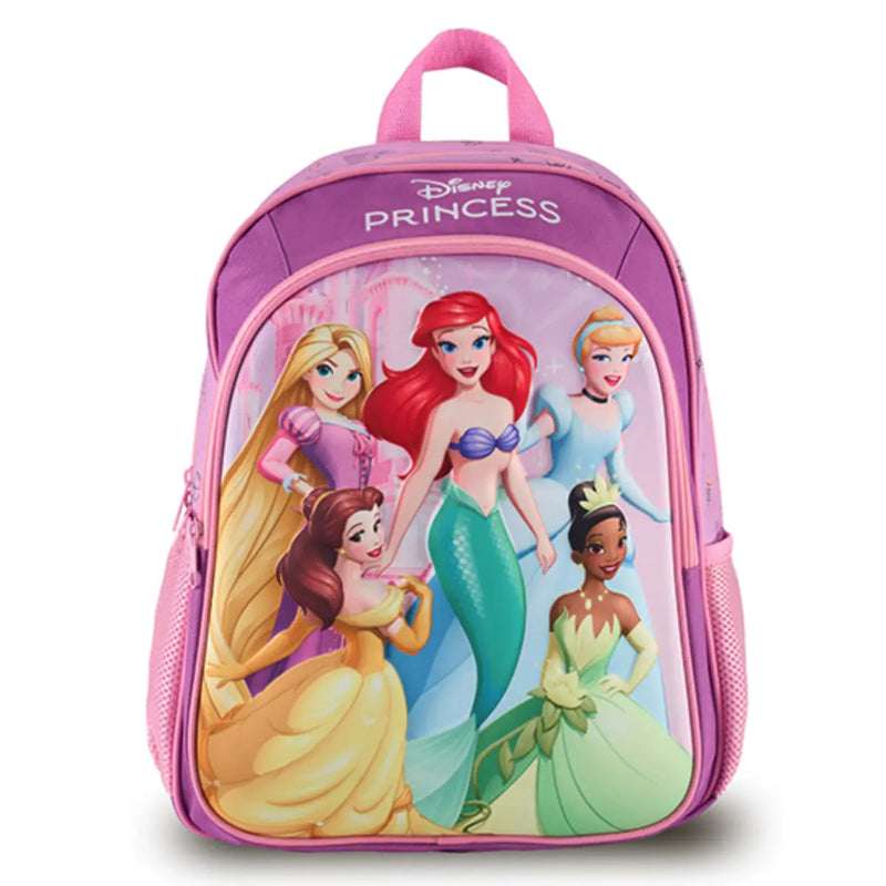 Make every day magical with this cute Disney Princess Backpack! These lightweight backpacks feature a 3D character mould of your favourite Disney Princesses (Rapunzel, Arial, Pocahontas and Jasmine), with matching patterned straps and top. Features dual side pockets for drink bottles, zippered front pocket for easy to access items and main compartment with plenty of room for school books, lunch boxes and your favourite items. Your little princess will love it!