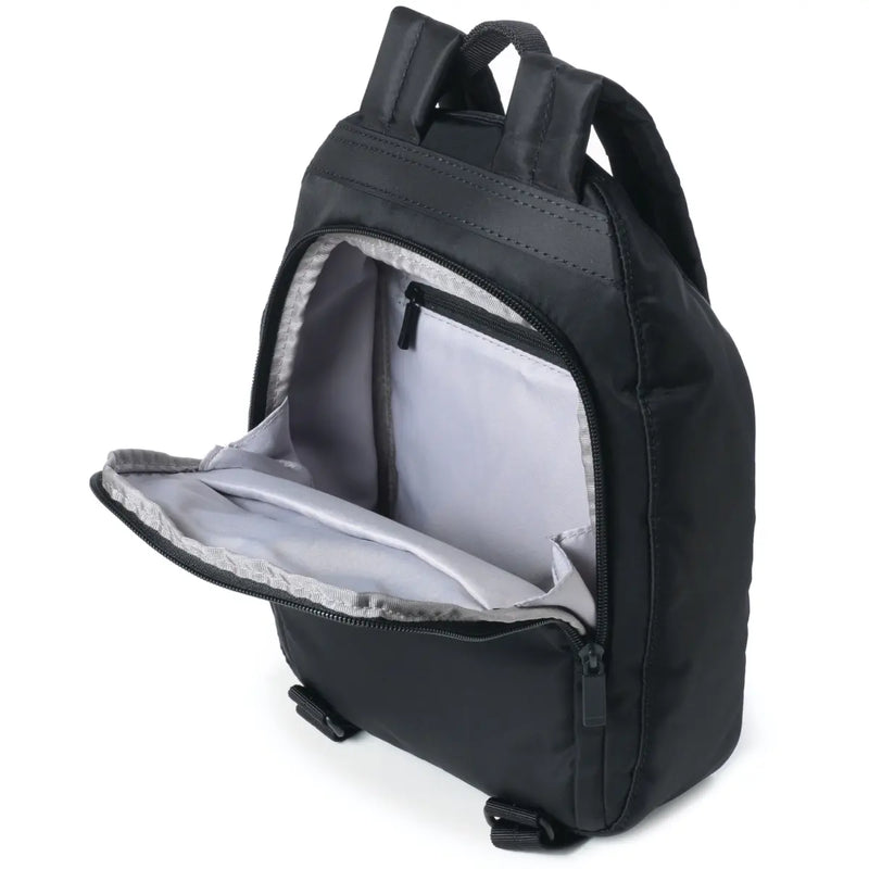 The compact bag features a spacious interior, ideal for carrying your daily essentials. The main opening is at the back and the bag makes use of RFID protection for a more secure place to keep your cards and other valuable contents. The lightweight design is complemented by padded adjustable shoulder straps, ensuring your comfort when you are carrying even the heaviest of loads.