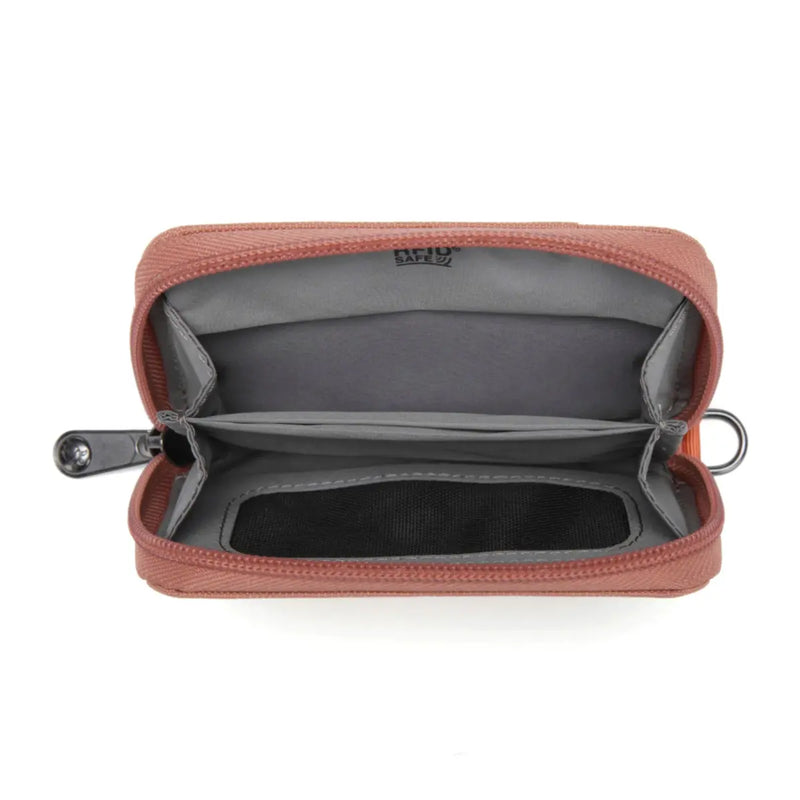 • Attachment point to clip into a Pacsafe bag or to attach wallet strap