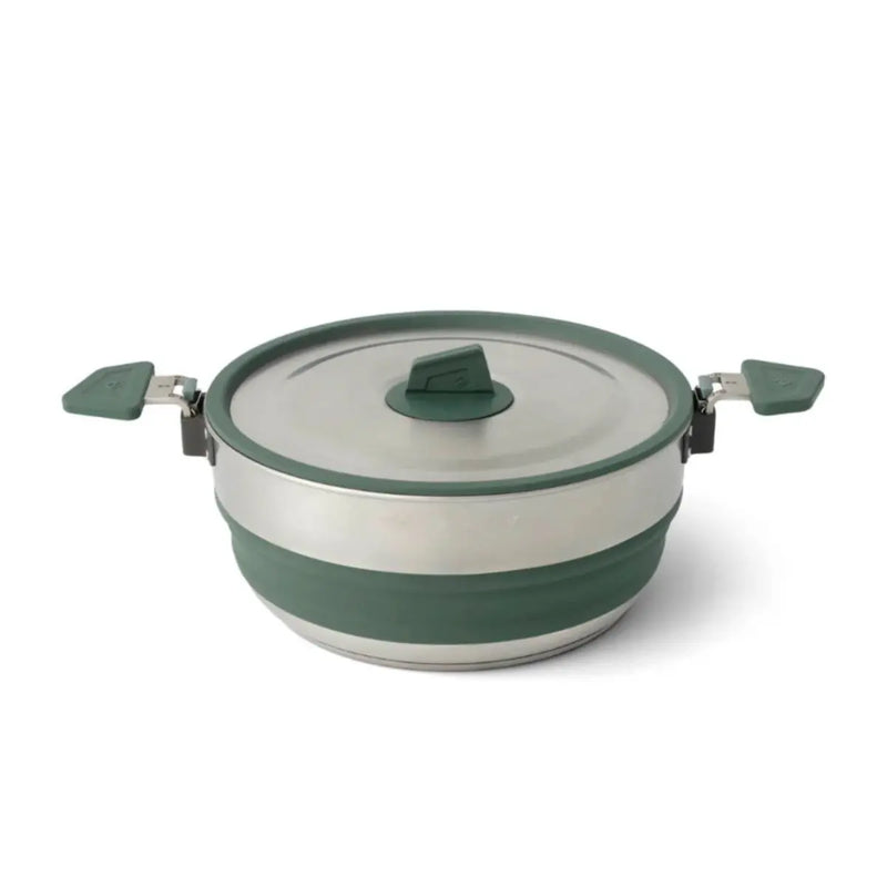 Induction-compatible, collapsible stainless steel pots with a three-layer base for even heat transfer form the heart of a great camp kitchen. Dual Click-Safe handles allow you to securely hold, carry and pour from the pots. The handles can be reversed to secure the lid (and any nesting tableware) during transport. A detour means sometimes taking the longer way on your journey; Detour cookware means you're the kind of person who doesn't cut corners.