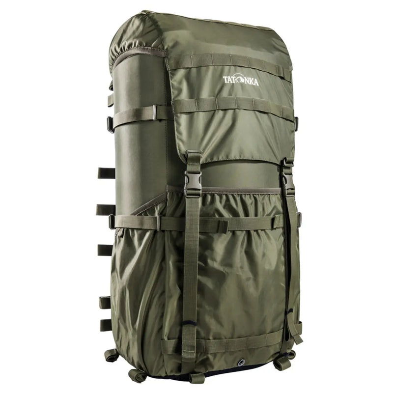 80-litre stuff bag designed for the Tatonka Freighter Load Carrier. This durable stuff bag transforms the Load Carrier into a backpack with a carrying system. This gives you a large backpack with carrying frame. The Tatonka Packsack Lastenkraxe has a volume of 80 liters. It has large pockets on the front and sides. In addition, it has material loops on the front and on the lid. The luggage is tightly lashed with the help of completely circumferential compression straps. The bottom of the pack bag is made of abrasion-resistant Cordura®.