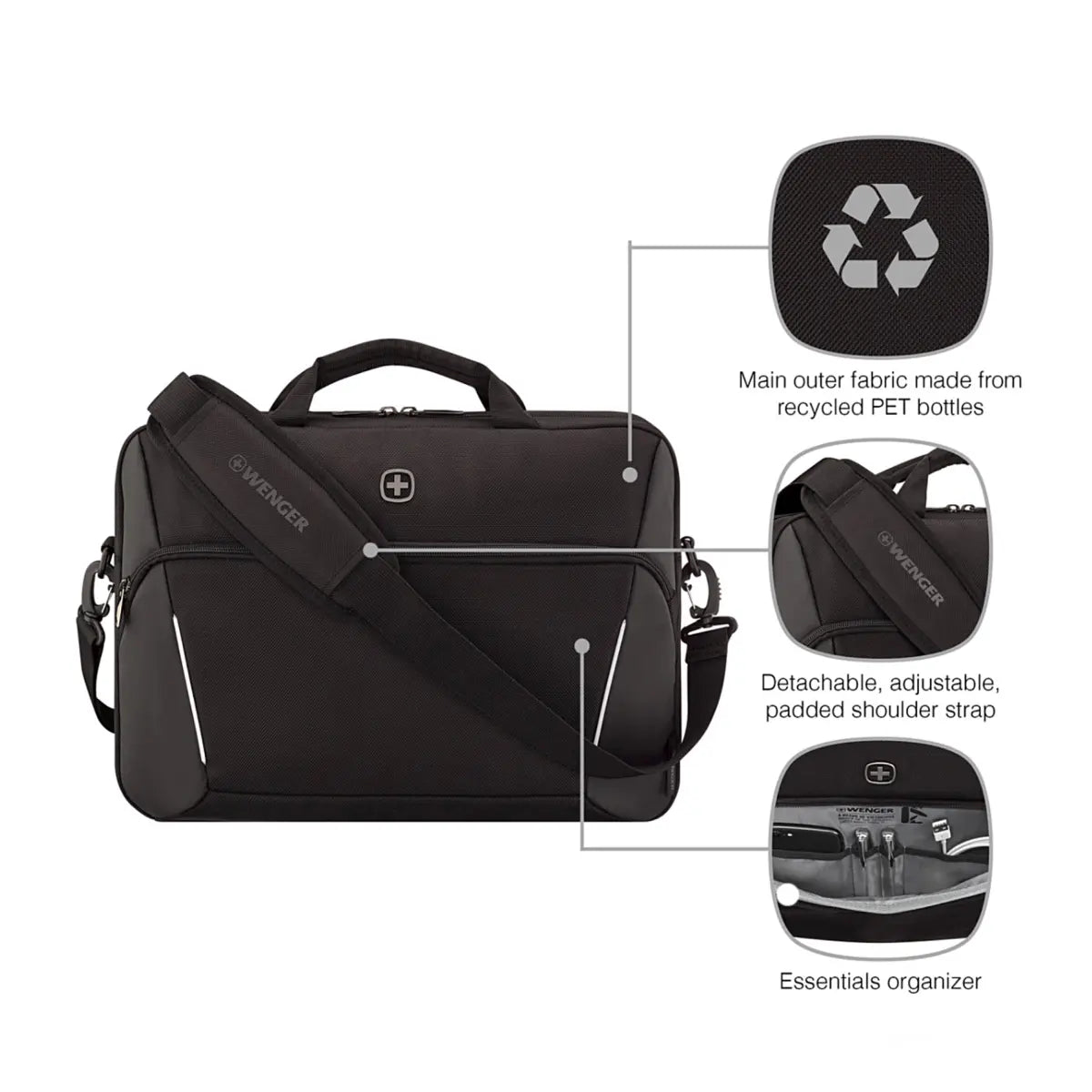 Wenger XE Compact 16" Laptop Briefcase with Tablet Pocket - Black